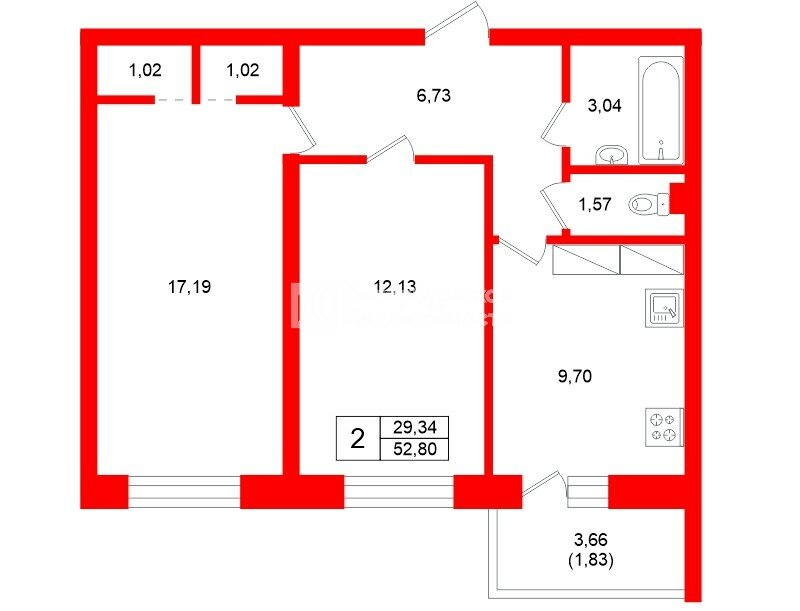 Тёплая, светлая квартира с отличной планировкой в кирпично-монолитном доме 2017 года постройки. Застройщик ЦДС в семейном доме с минимальным количеством студий.