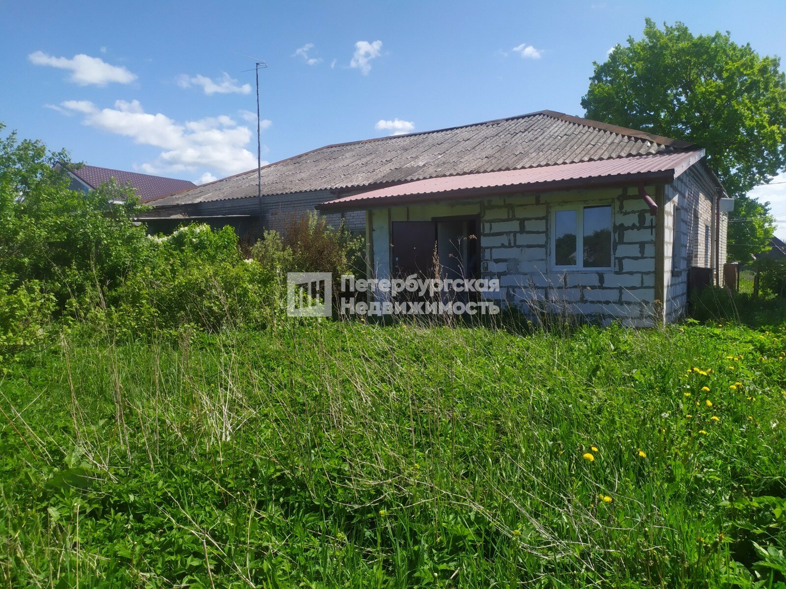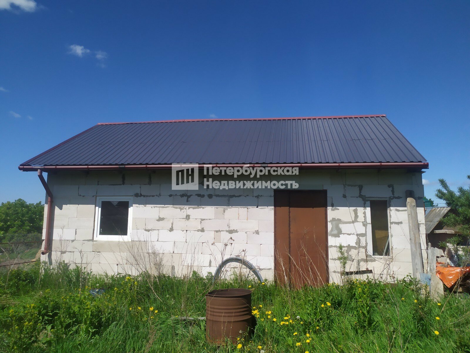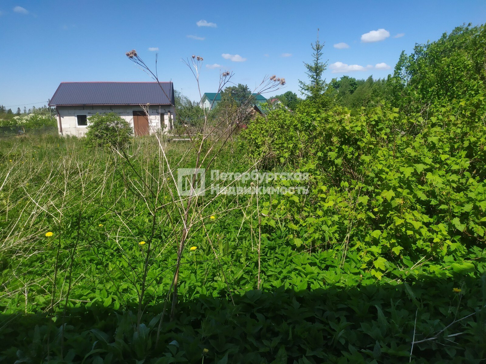 На разработанном участке построен новый сарай из шлакоблоков 6х3 м со стеклопакетами, на плодородной земле отлично растут деревья, кусты, цветы.