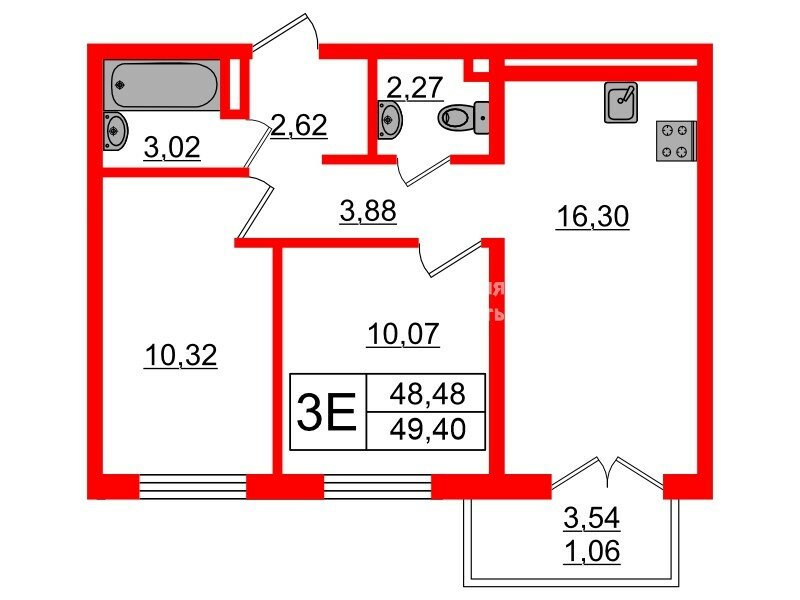 2-комн. кв. 49.4 м² у метро Проспект Ветеранов