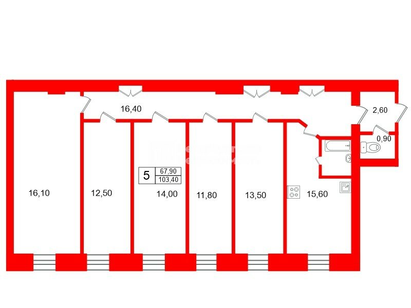 - площадь комнат — 16,1 кв.м.,12,5 кв.м, 14,0 кв.м., 11,8 кв.м., 13,5 кв.м. (все комнаты изолированные);