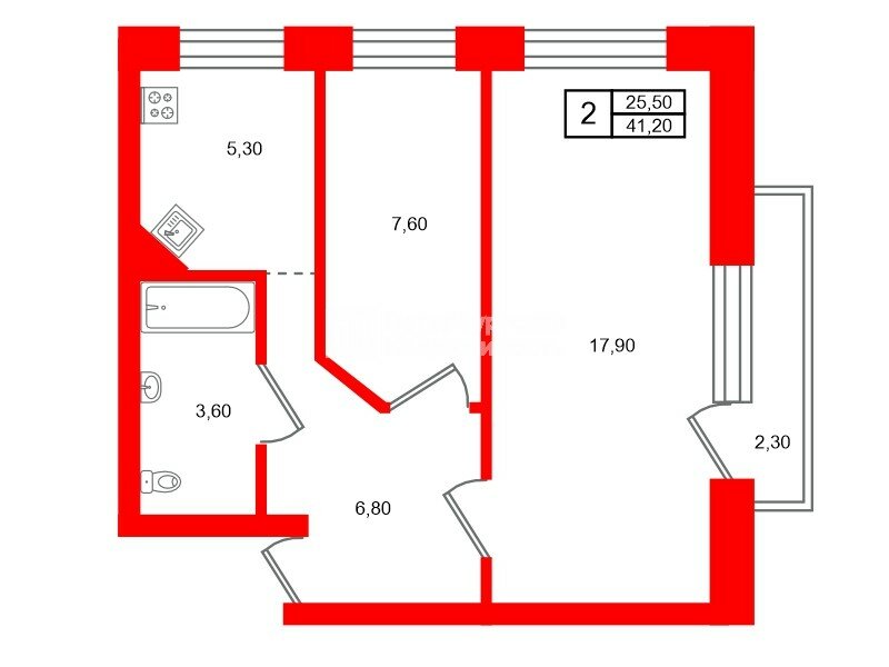 2-комн. кв. 41.2 м² у метро Парк Победы