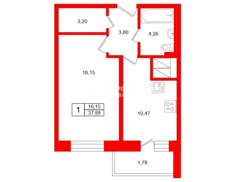 1-комн. кв. 37.88 м² у метро Девяткино