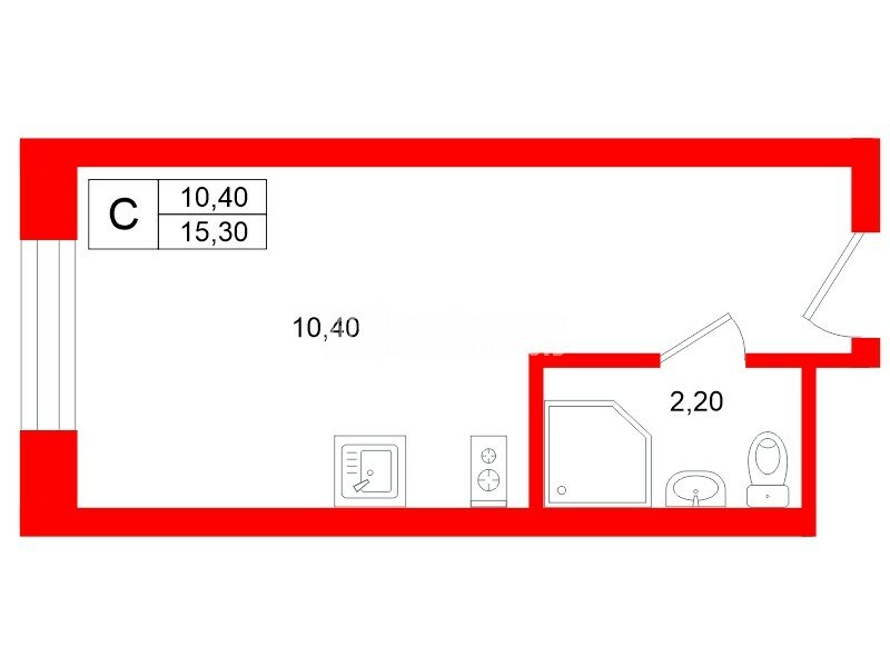 Апартаменты общей площадью 15,3 м2, расположенные на 19 этаже.