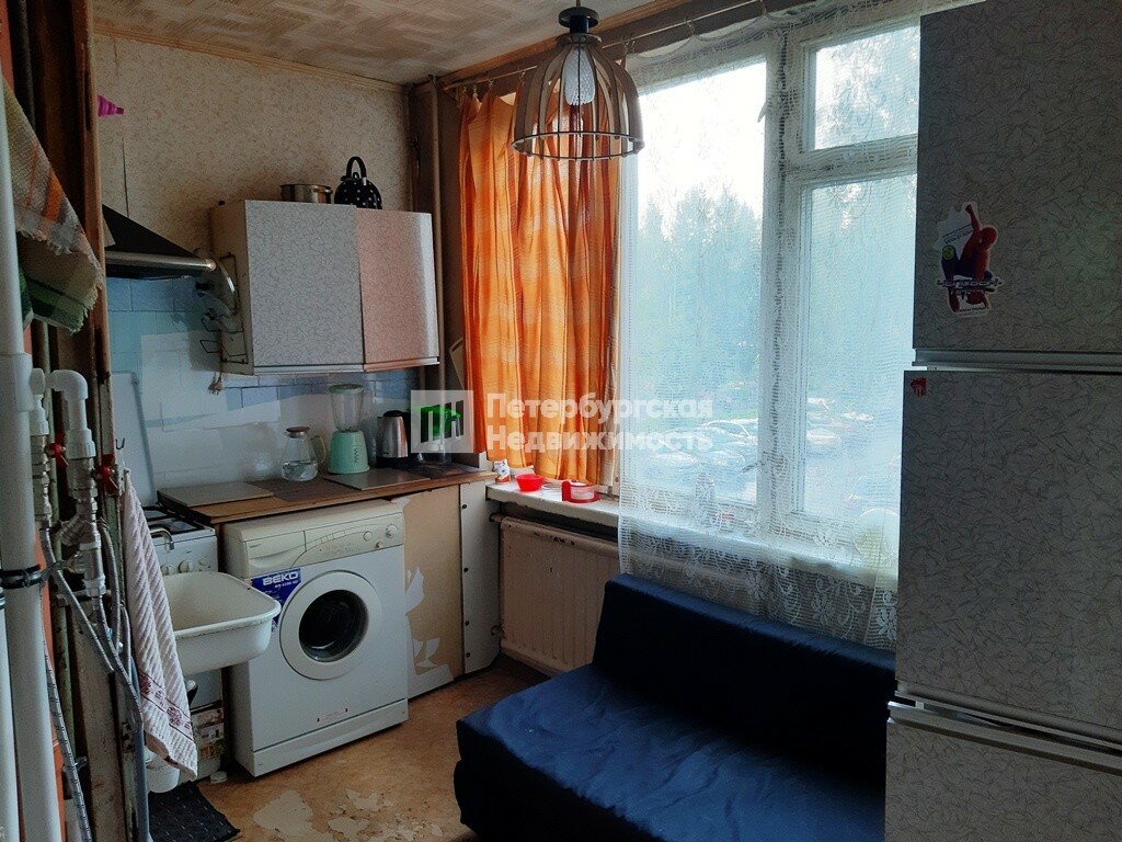 Квартира двусторонняя, поэтому здесь всегда достаточно света, и очень теплая. Из окон вид в зеленый двор. Состояние – под ремонт.
