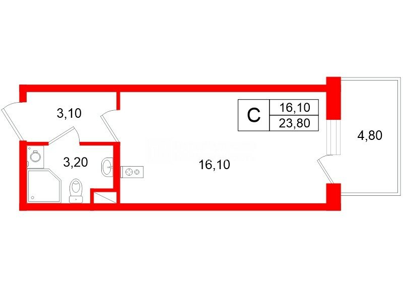 Студия 23.8 м² у метро Проспект Просвещения
