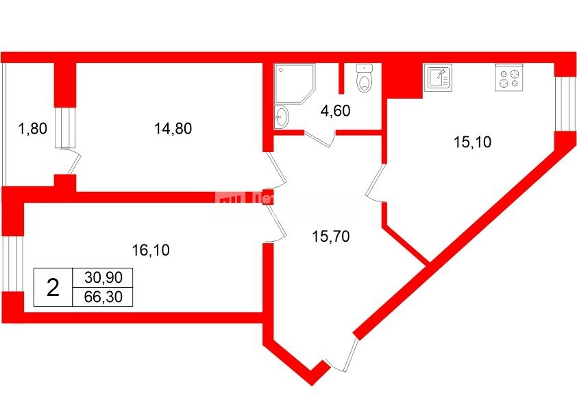 2-комн. кв. 66.3 м² у метро Ломоносовская