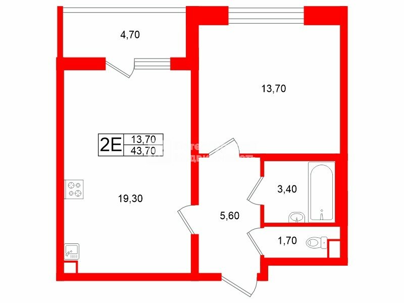 1-комн. кв. 43.7 м² у метро Пр.Большевиков