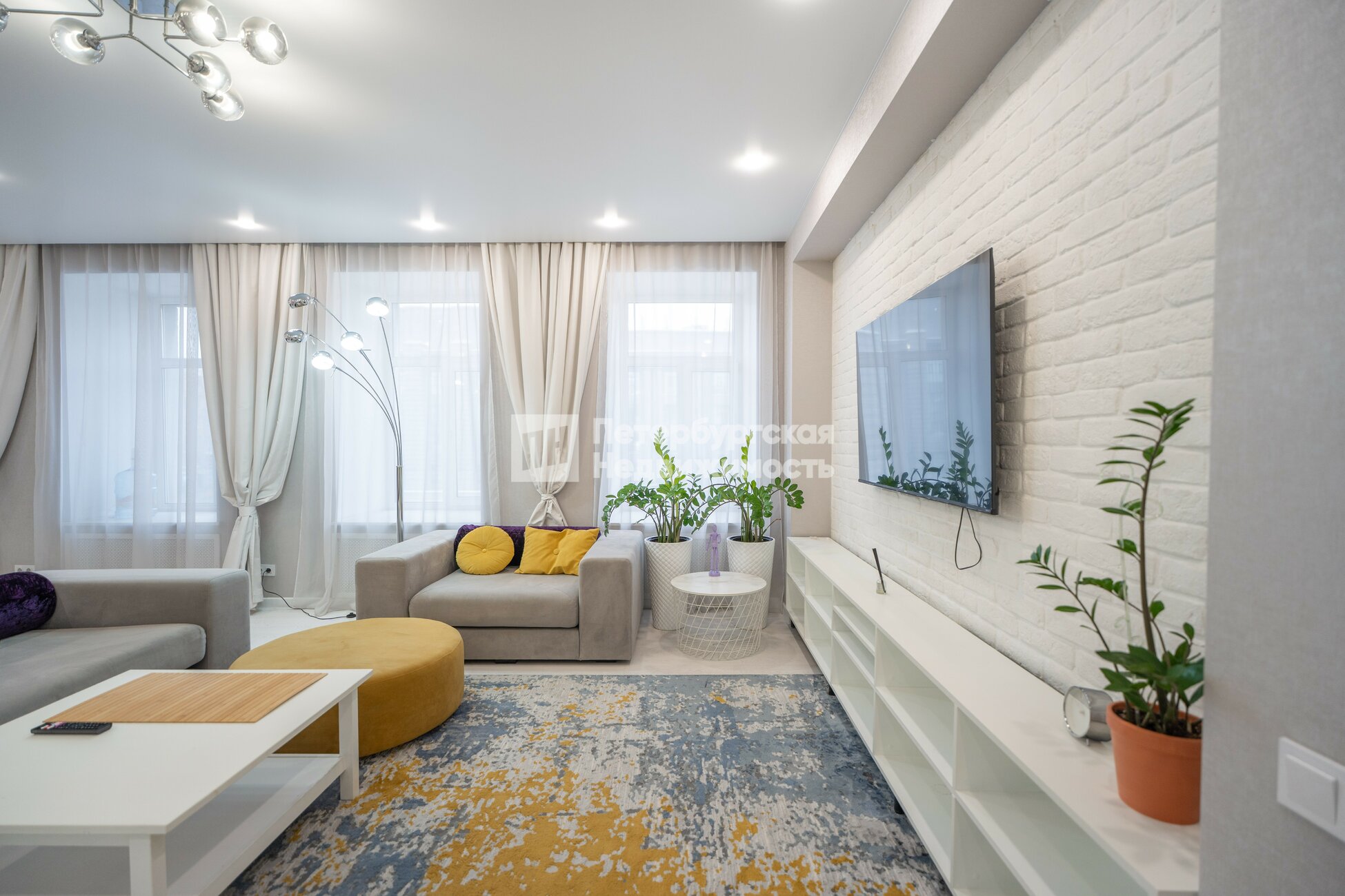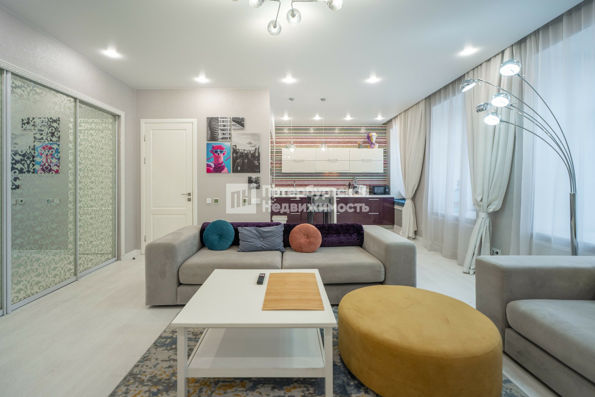Остаётся вся мебель и техника кроме телевизора и жёлтого пуфика.