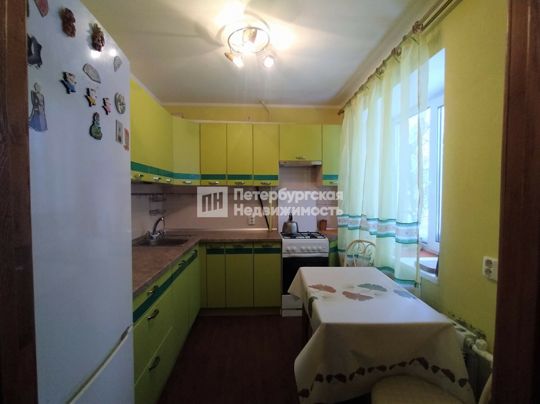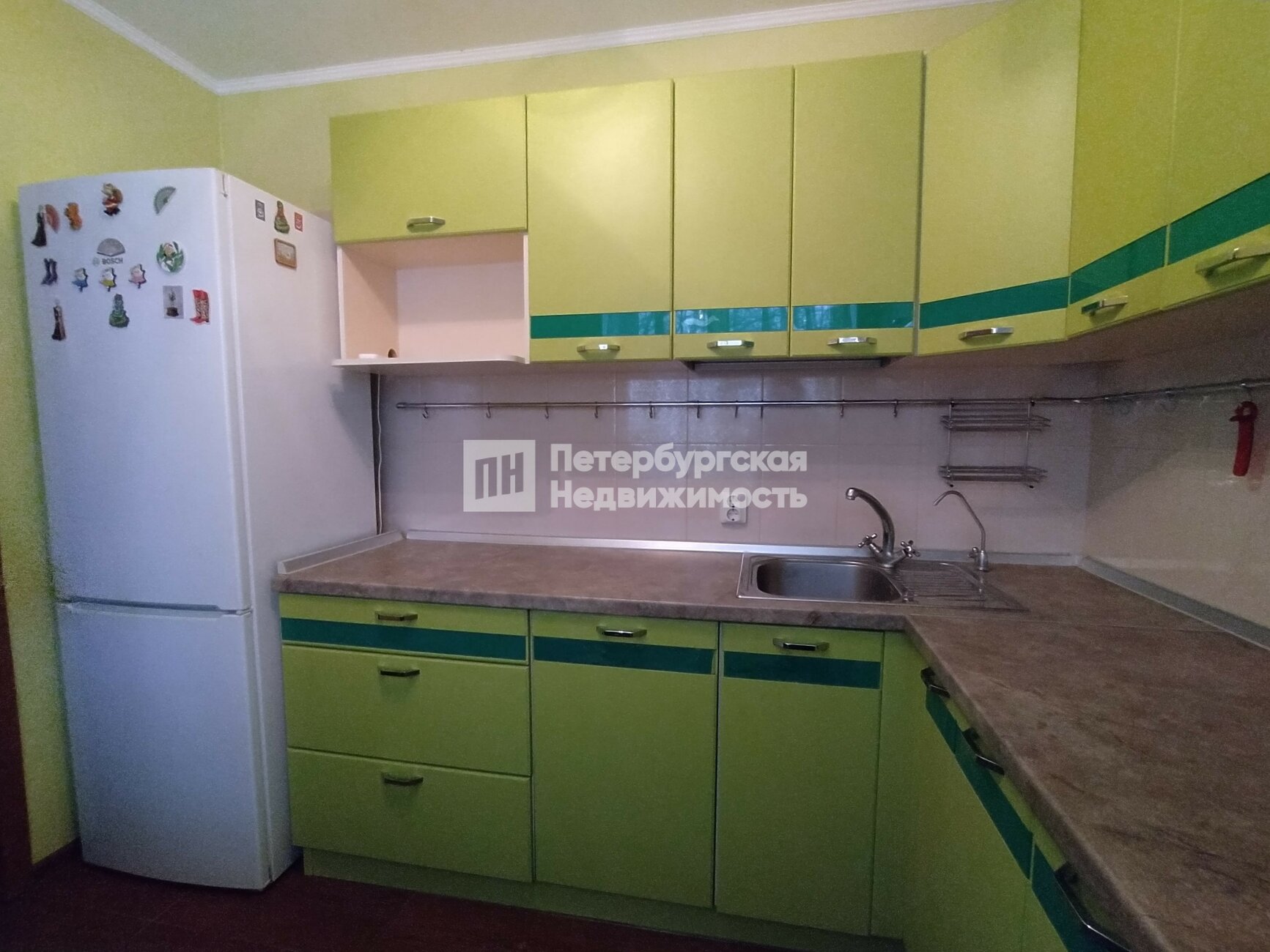Окна выходят в уютный зеленый двор. Во дворе детская и спортивная площадки.