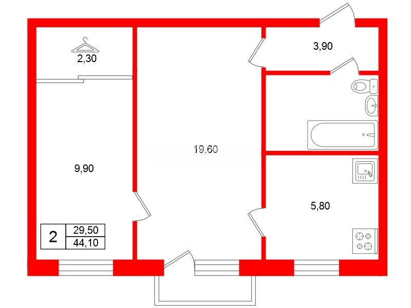 2-комн. кв. 44.1 м² у метро Московская