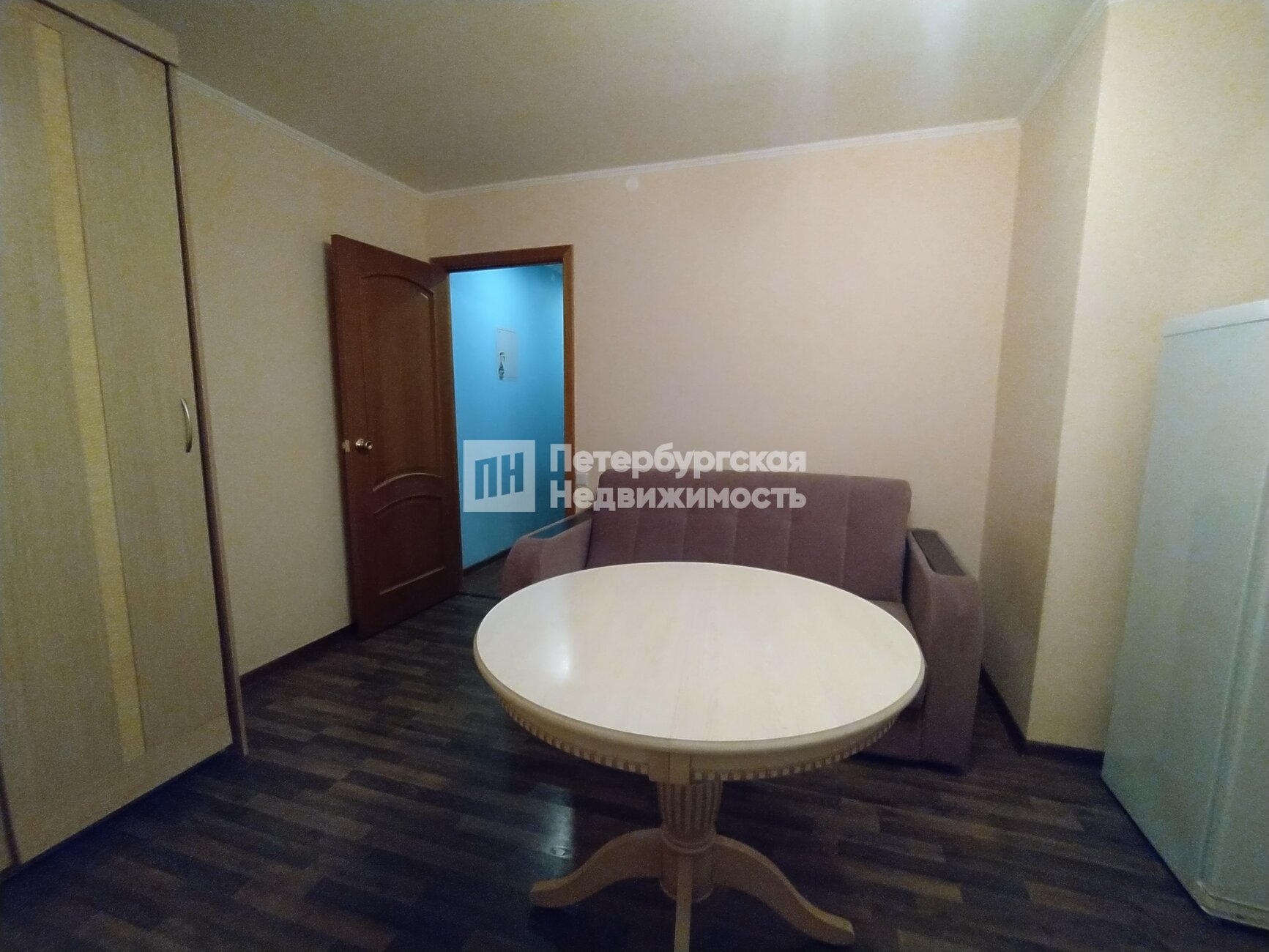 Квартира общей площадью 44.1 кв.м. расположена на 3 этаже 5 этажного дома. Комнаты в квартире смежные, площадь комнат - 19.6 и 9.9 кв.м. В спальне обустроена полноценная гардеробная вместо обычных шкафов.