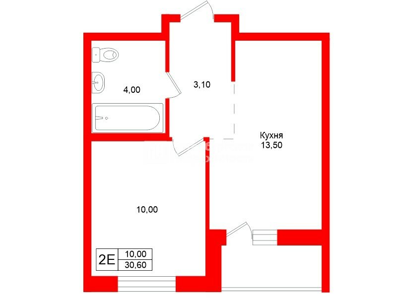 Квартира компактная, но с продуманной планировкой площадью 30,6 м2: просторная кухня-гостиная (13,5 м2), уютная спальня (10,3 м2), совмещенный санузел и остекленная лоджия.