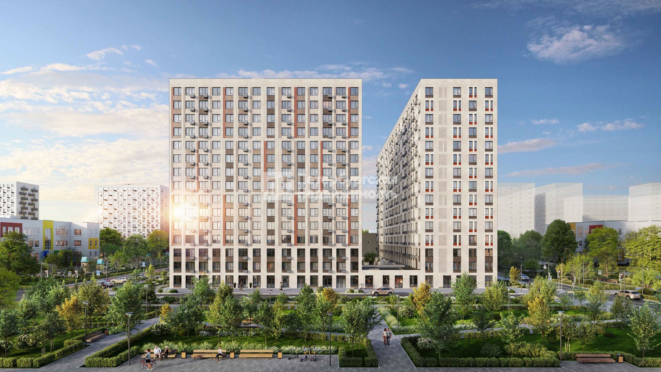 Удобства поблизости: на территории ЖК 3 детских сада и школа на 1550 учеников, коммерческие помещения на первых этажах.