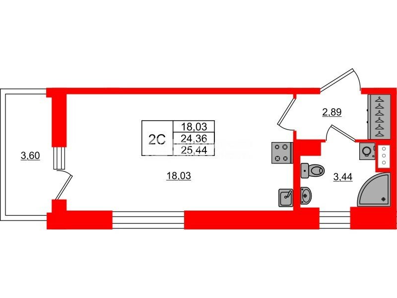 Студия 24.36 м² у метро Елизаровская