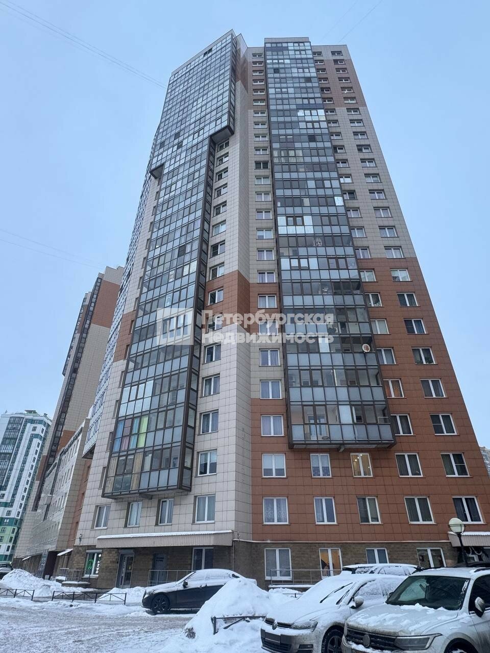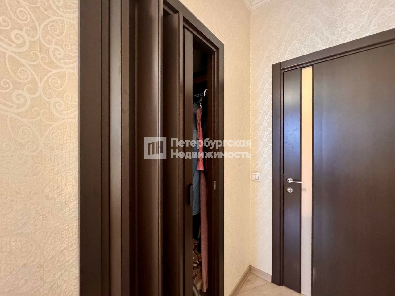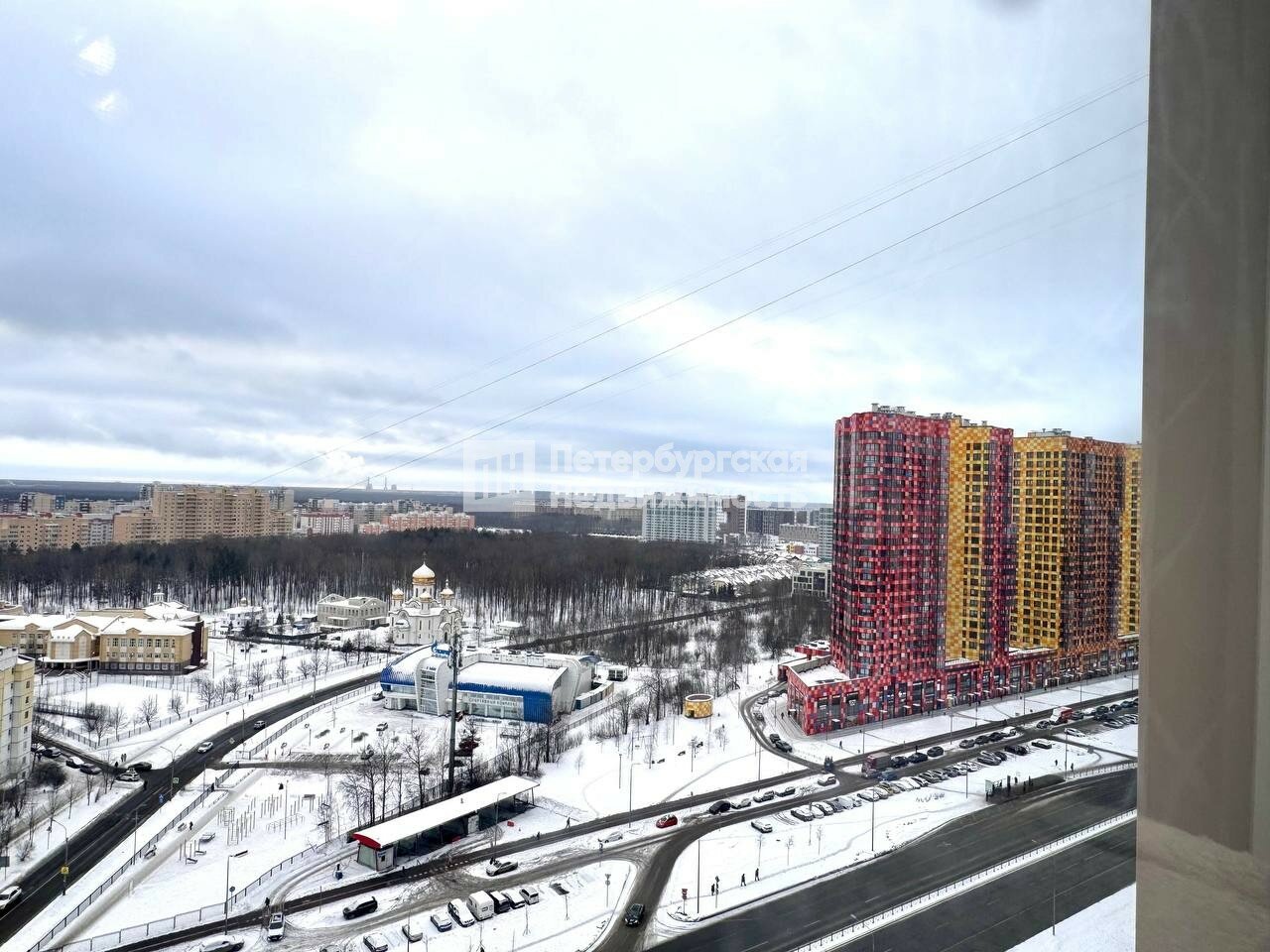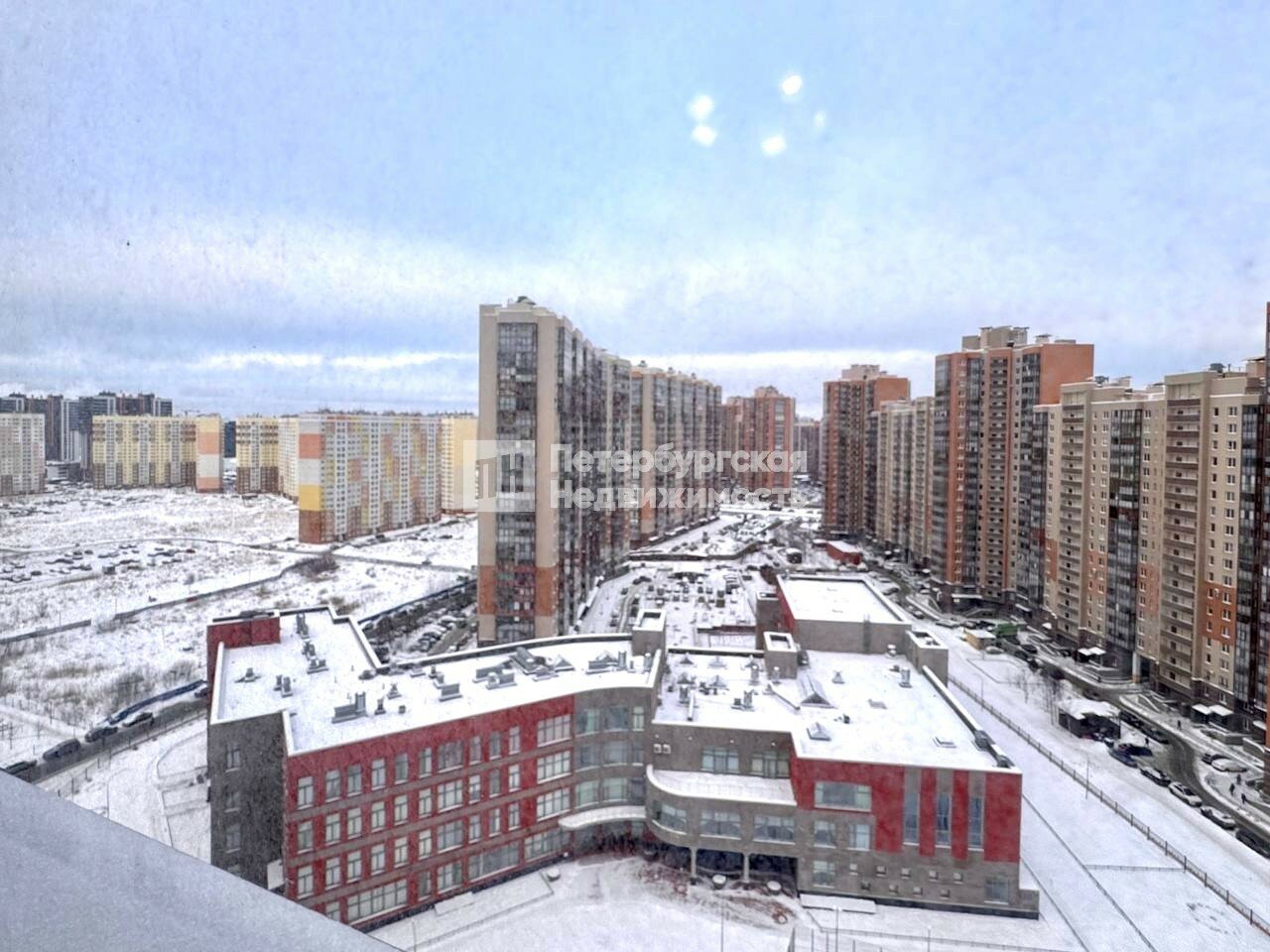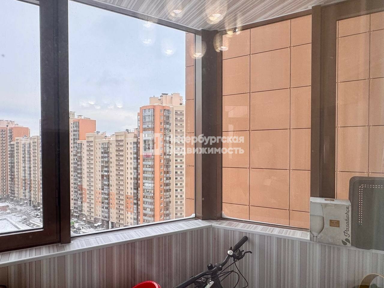 Квартира расположена на 18 этаже 25-этажного дома, двусторонняя, окна выходят во двор и на Комендантский проспект - впечатляющие виды на город, хорошо видна Лахта.