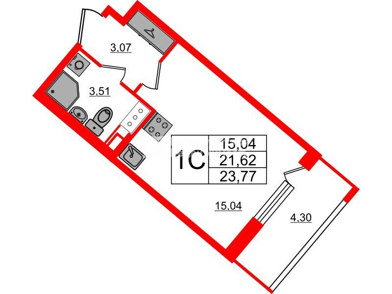Удобная, классическая, функциональная европланировка, вместительная прихожая 3.01 м2. Общая площадь студии - 21.62 м2, жилая 15.04, высота потолка 2.7 м.