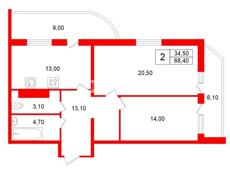 2-комн. кв. 68.4 м² у метро Ленинский Проспект