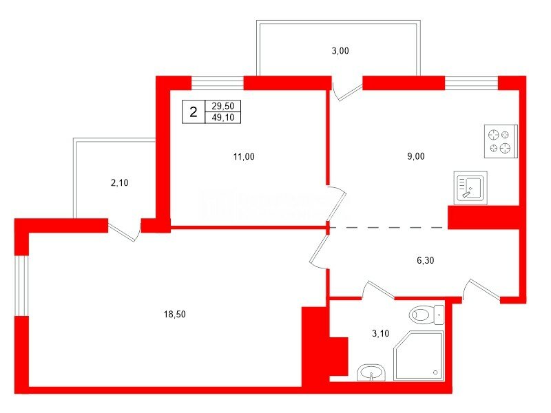 В прямой продаже небольшая, эргономичная двухкомнатная квартира в ЖК "Дом БДТ"