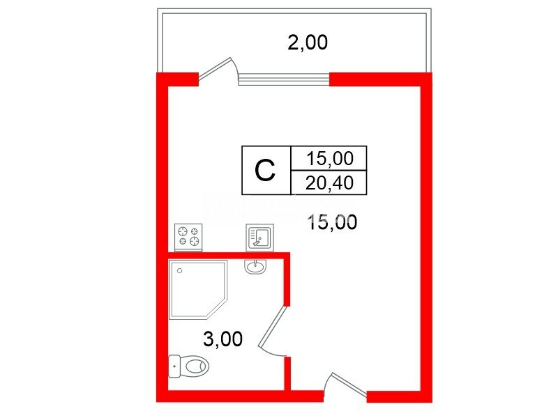 Студия 20.4 м² у метро Проспект Ветеранов