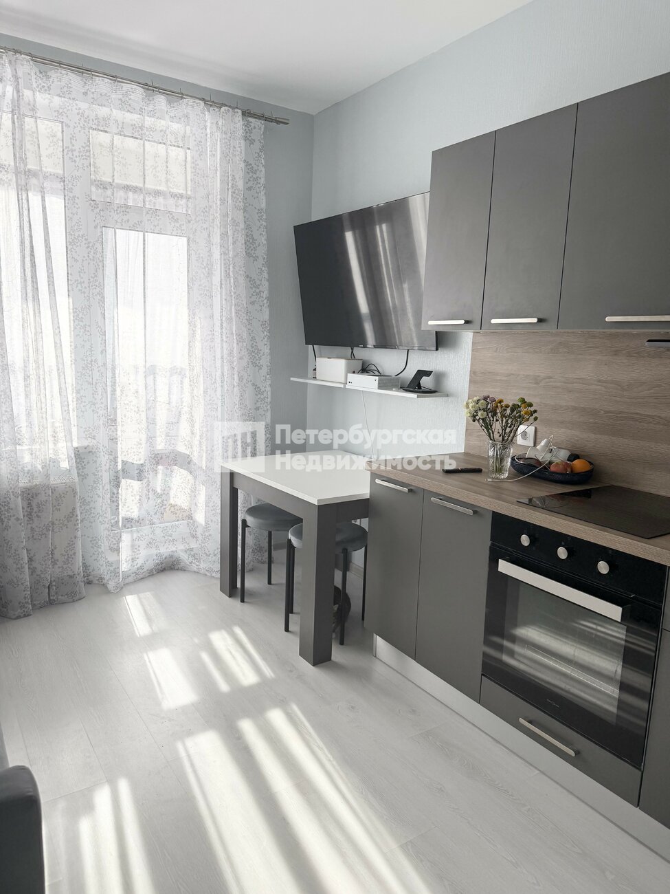 Планировка практичная: просторная кухня-гостиная площадью 14,02 квадратных метра с выходом на большую лоджию, две изолированные комнаты площадью 17 и 11 квадратных метров. В квартире выполнена полная отделка комфорт-класса, раздельный санузел с теплым полом и местом для стиральной машины, удобный коридор с нишей для организации гардеробной системы. Дополнительным преимуществом является наличие кладовой или гардеробной. В квартире светло и тепло.