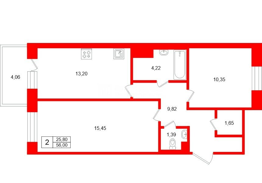 Предлагается к продаже двухкомнатная квартира площадью 56 квадратных метров в современном малоэтажном комплексе комфорт-класса «Солнечный город. Резиденции». Квартира расположена в тихой зоне на лестничной клетке в отдалении от лифта и не имеет смежных стен с коммерческими помещениями, что гарантирует отсутствие постороннего шума.