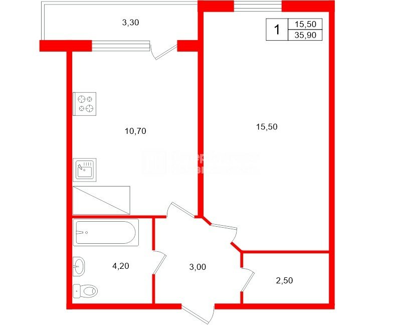 1-комн. кв. 35.9 м² у метро Парнас
