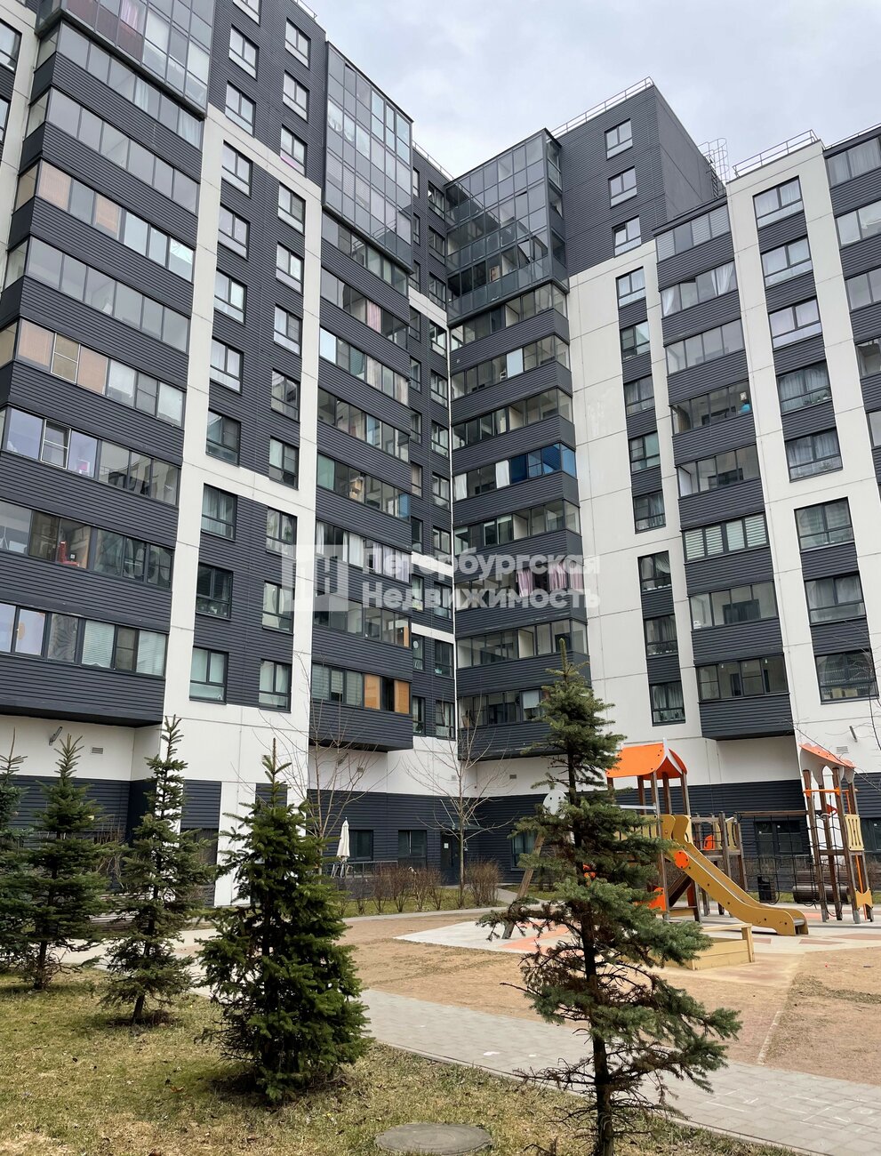 Закрытый двор без машин, скандинавская архитектура, комплекс комфорт класса.