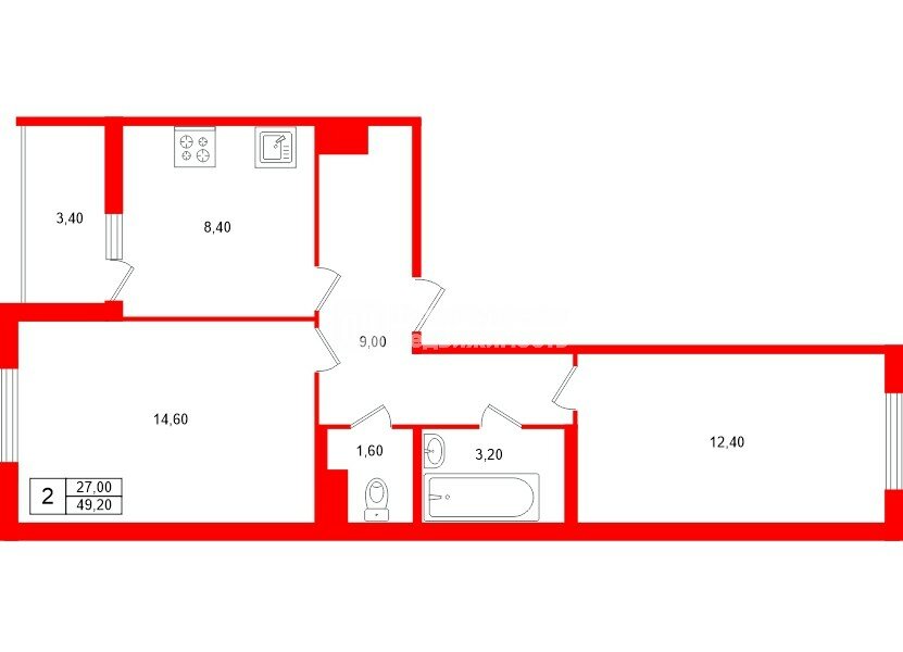 -Простор и свет: французское остекление лоджии, продуманное освещение, гардеробная и пространство для дополнительных мест хранения. Кухня 8,4 м2, комнаты 12,4 м2 и 14,6 м2.