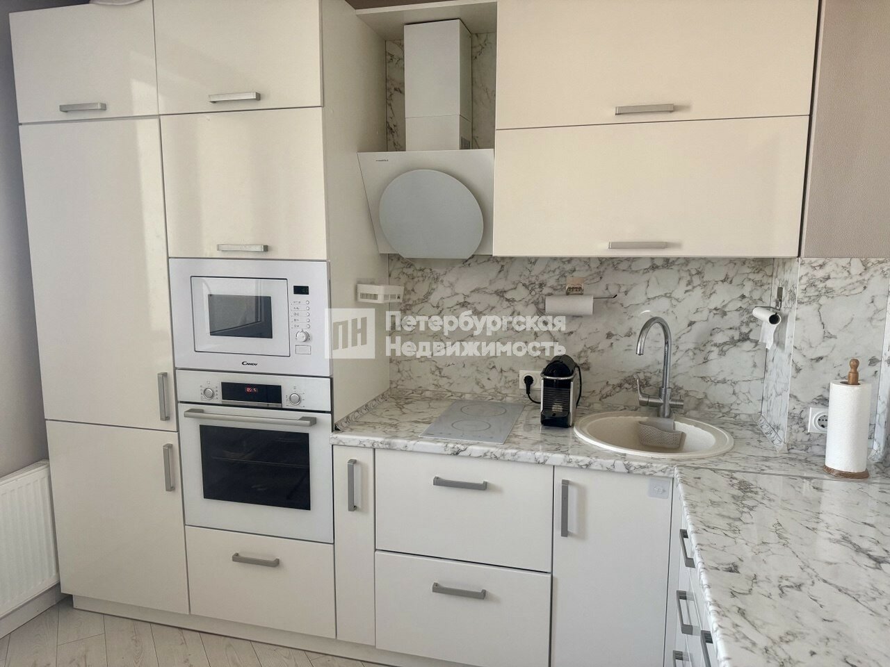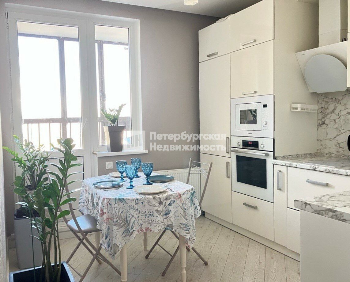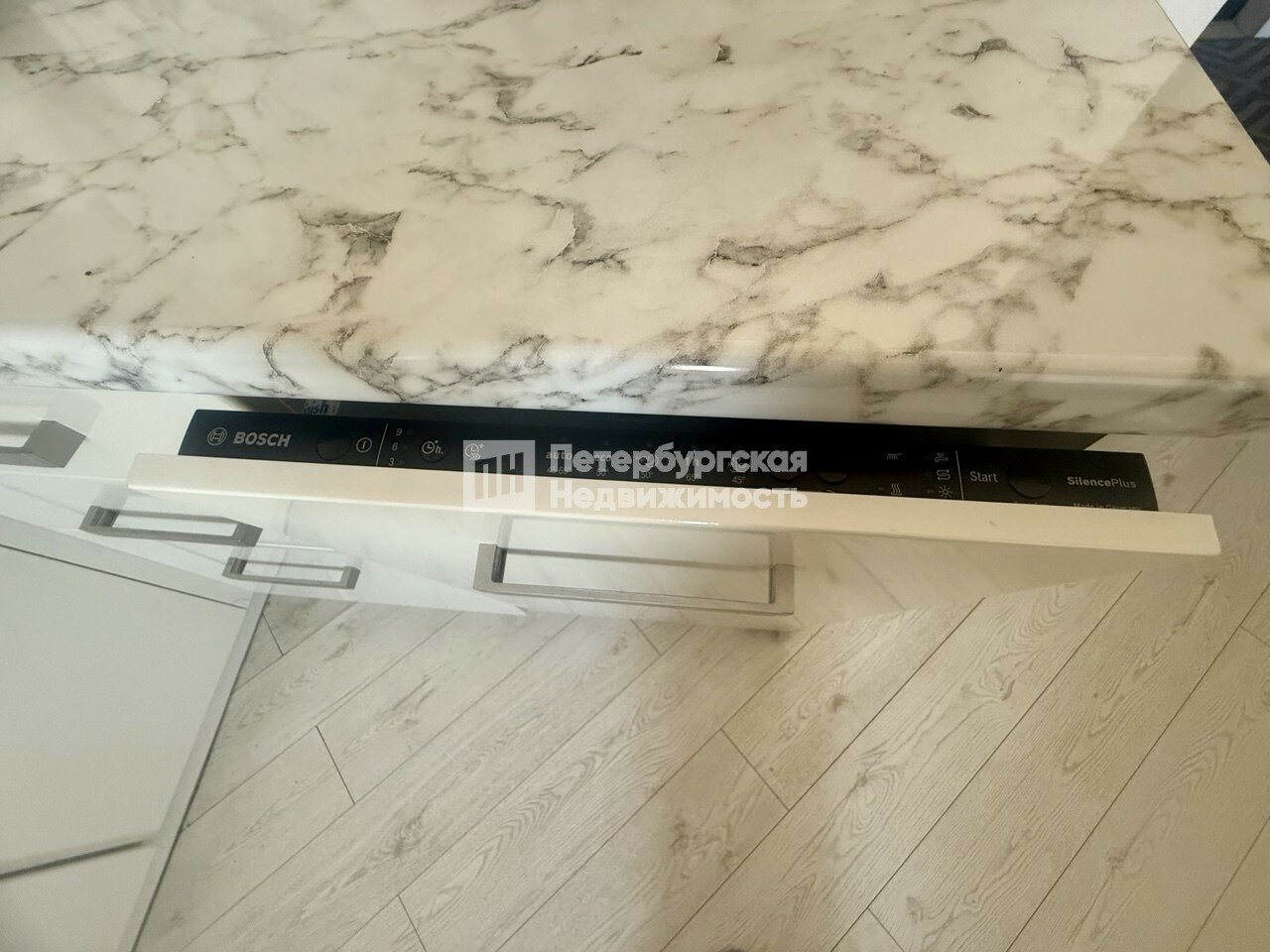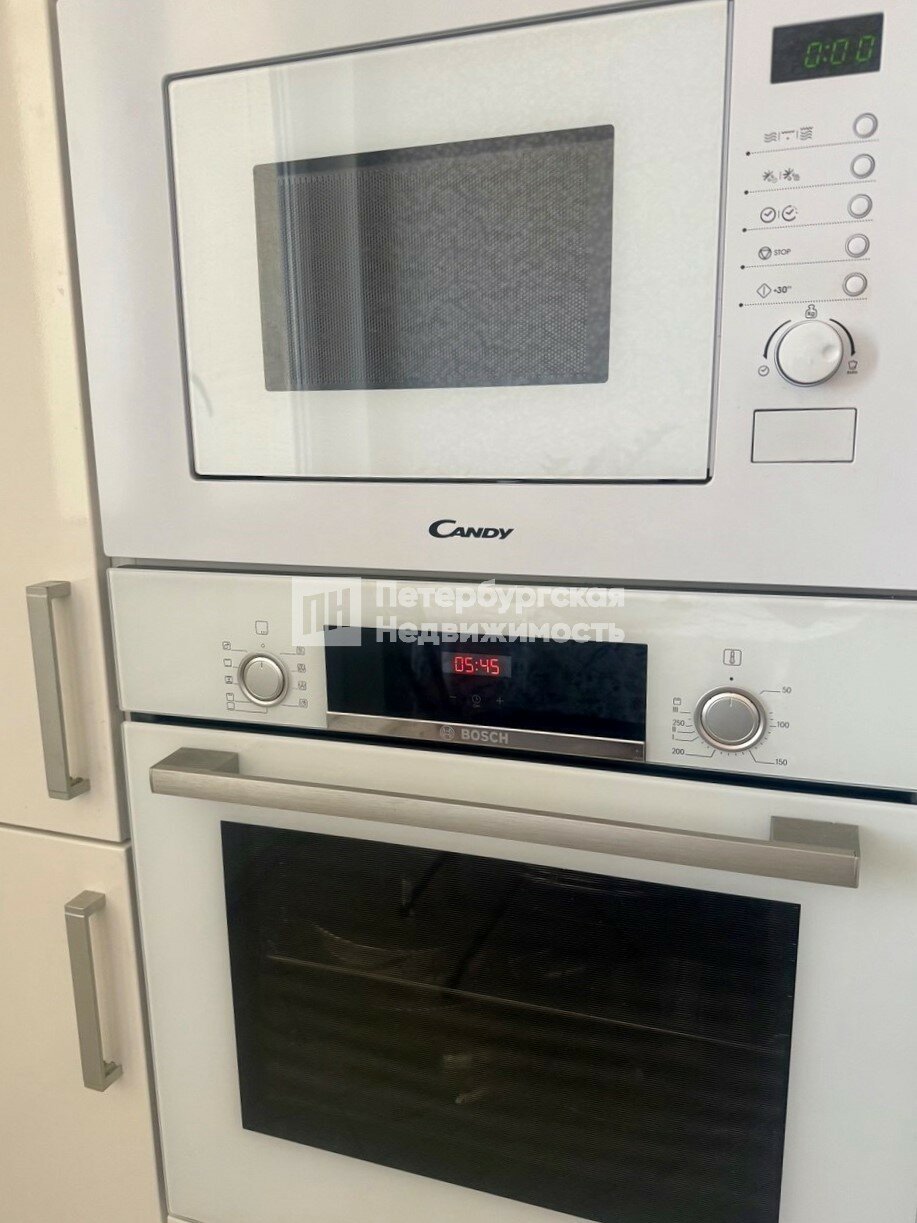-Готовое решение: ремонт в современном стиле, встроенная техника Bosch (стиральная, посудомоечная машина, духовка), микроволновая печь, индукционная варочная поверхность. Вся мебель выполнена на заказ.