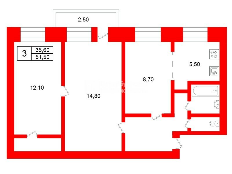 3-комн. кв. 57.8 м² 8/9 этаж