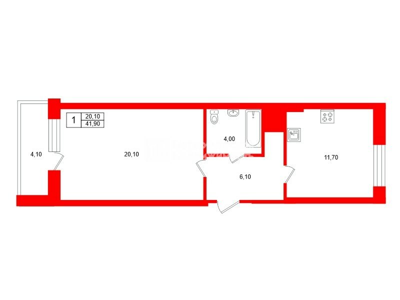 1-комн. кв. 41.9 м² у метро Ломоносовская