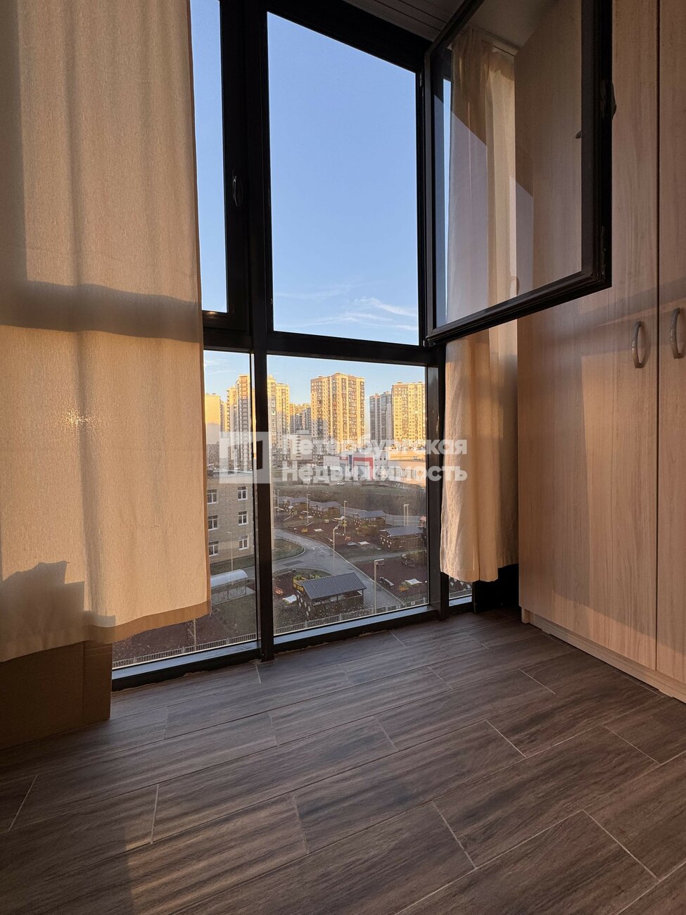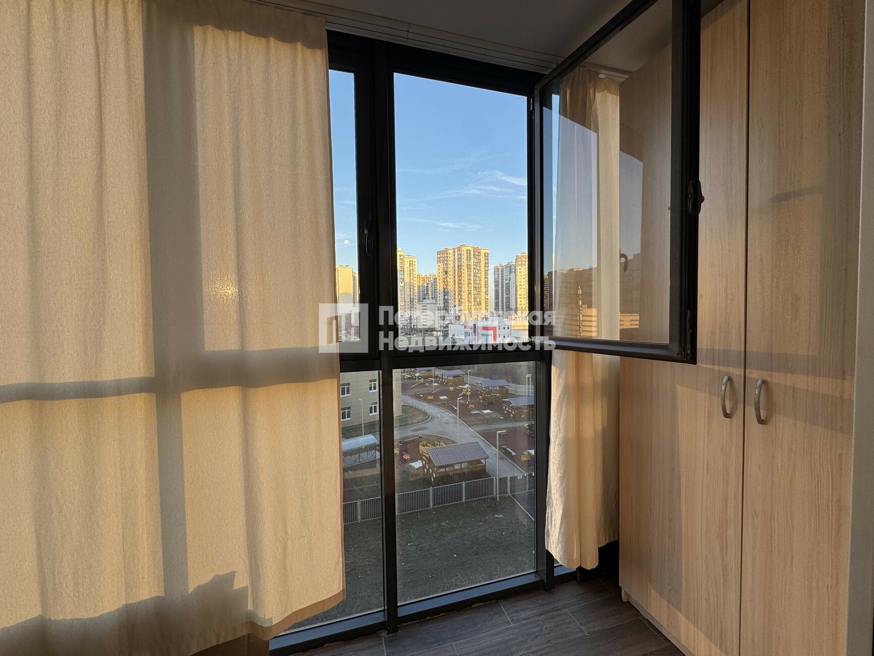 - квартира на две стороны, окна кухни выходят во двор, окна спальни выходят на детский сад и перспективу города