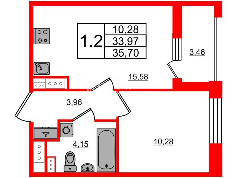* Тип: 2-евро (с большой кухней-гостиной).