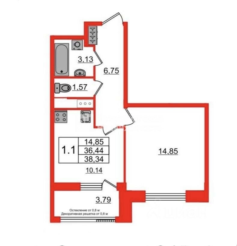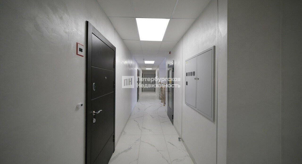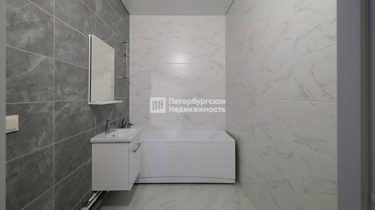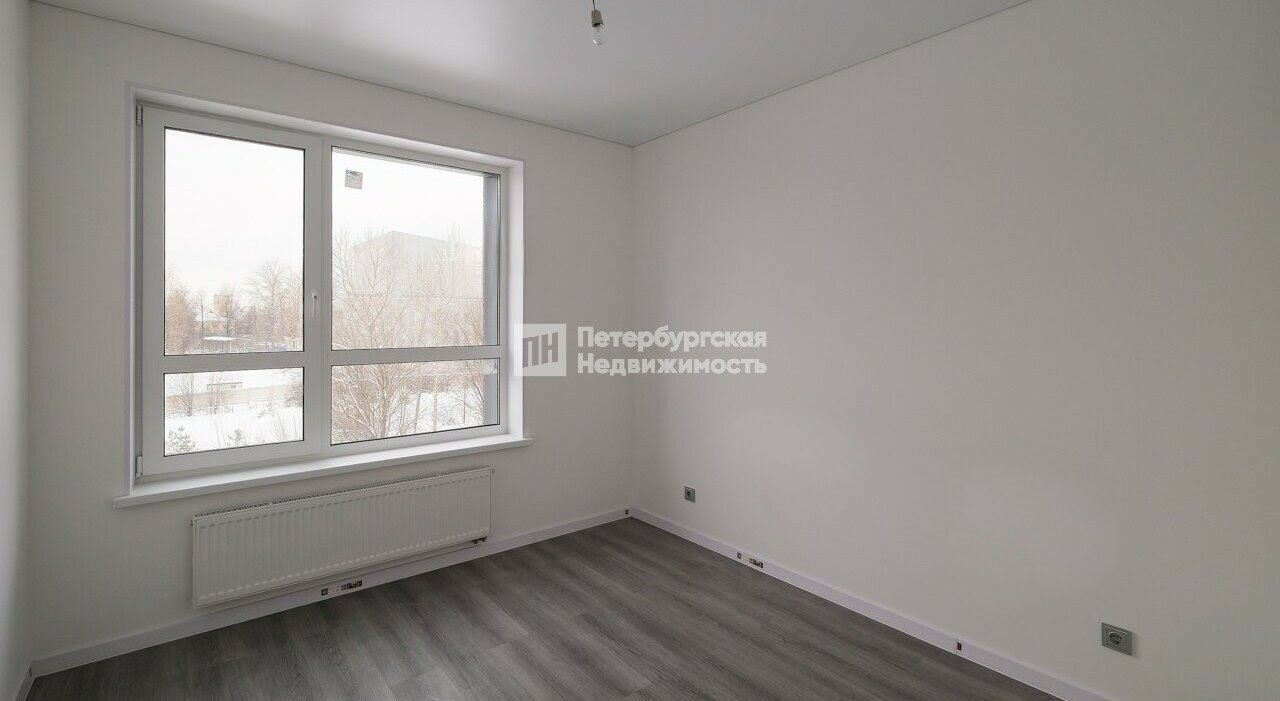 В квартире сделана чистовая отделка от застройщика, установлена сантехника. Окна выходят на проспект Обуховской Обороны, и алюминиевые стеклопакеты с увеличенной площадью остекления позволяют любоваться видом на город. Планировка с лоджией, панорамным остеклением на кухне, большой комнатой и раздельным санузлом.