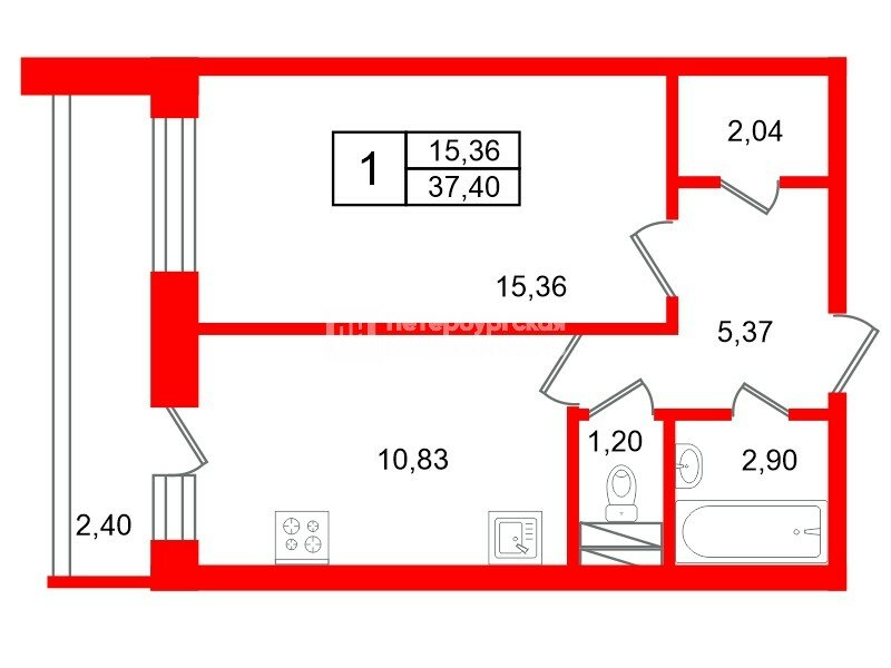 1-комн. кв. 37.4 м² у метро Улица Дыбенко